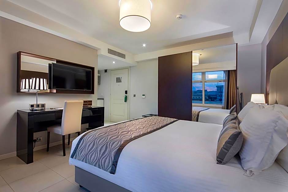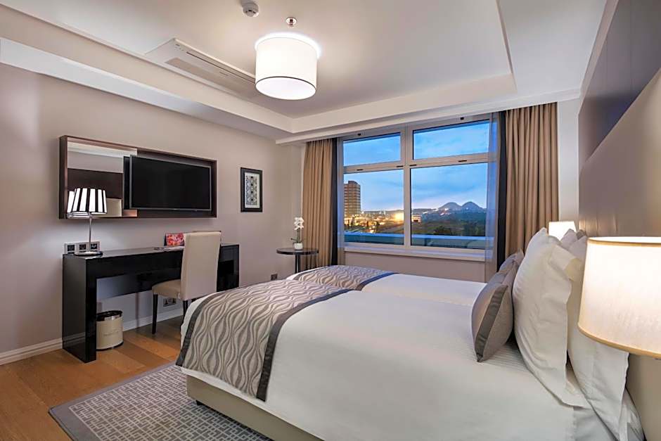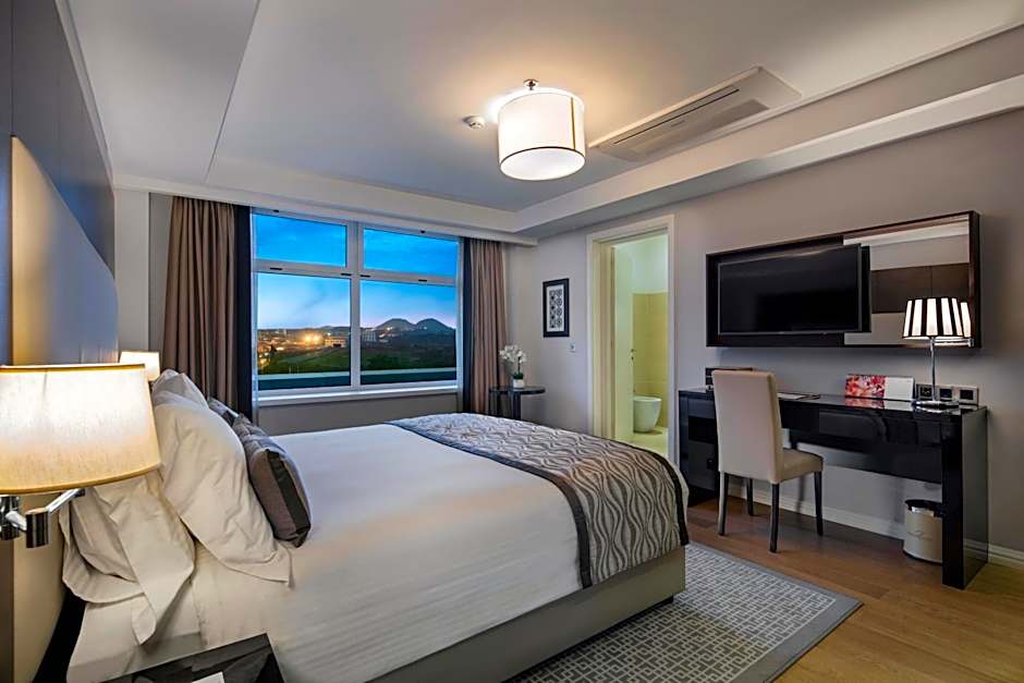 The spacious suite features 1 bedroom and 1 bathroom with a shower and free toiletries. The kitchenette is equipped with a refrigerator, kitchenware and a microwave. The suite is furnished with a desk and a seating area and provides air conditioning, a coffee machine and city views. The unit offers 1 bed.